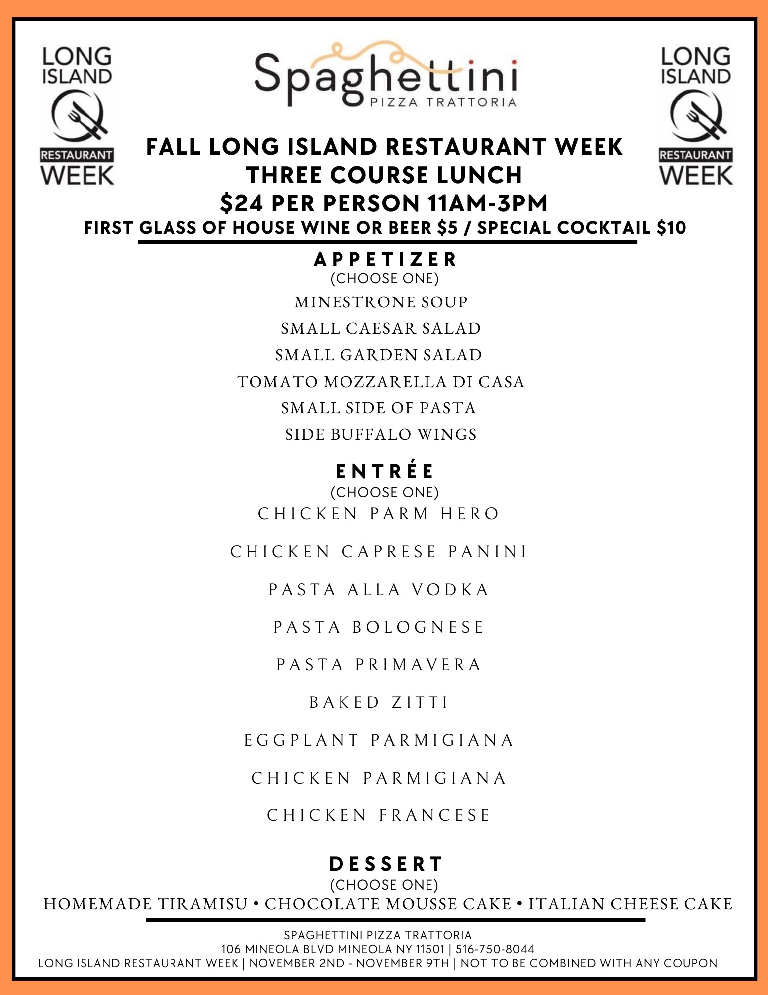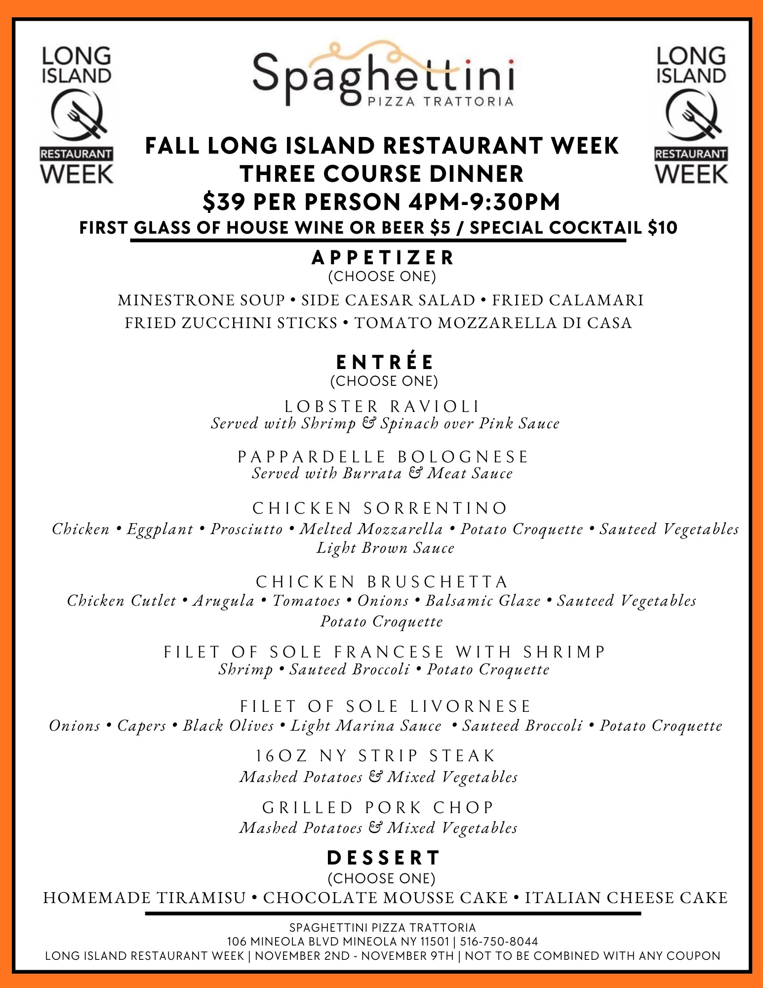 Join us for Long Island Restaurant Week from November 2nd to November 9th and indulge in a culinary celebration like no other.